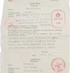 Karla Bernhard-Rath, Rot-Kreuz-Brief, 1941
